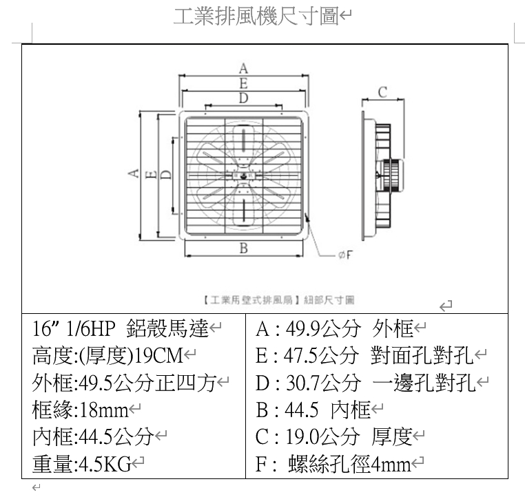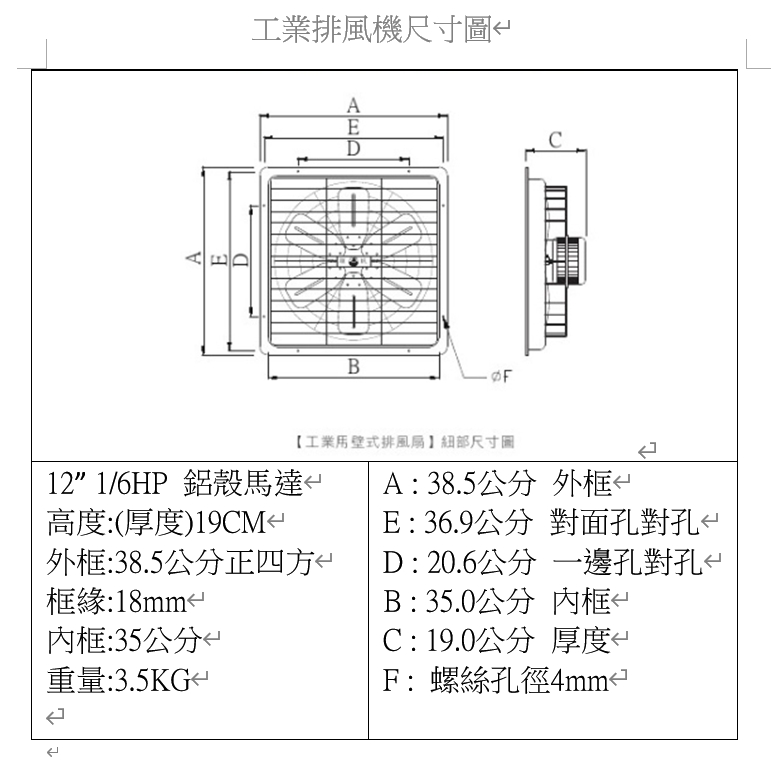慶豐牌 CFF系列 S型號 110mm矽鋼片 12吋~16吋 工業排風機