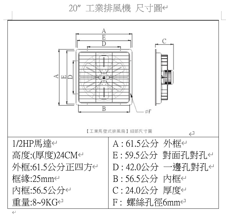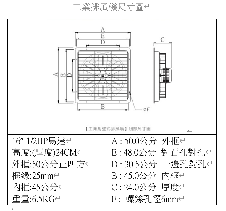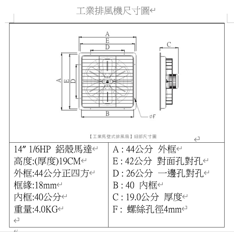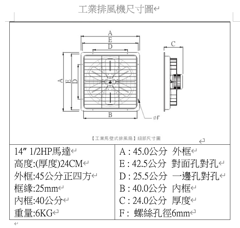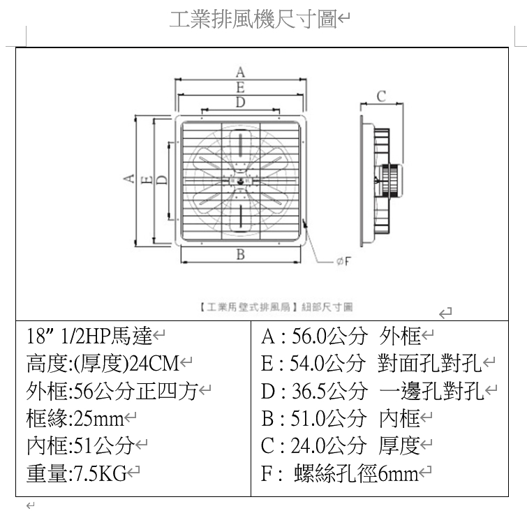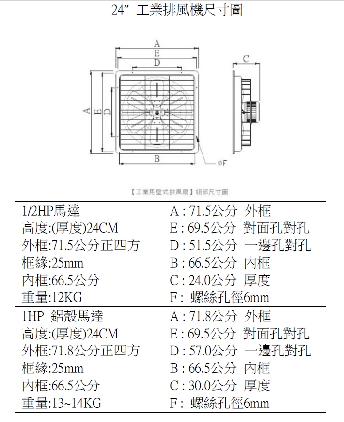 慶豐牌 CFF系列 1/2HP 1HP 140mm矽鋼片 14吋~24吋 工業排風機